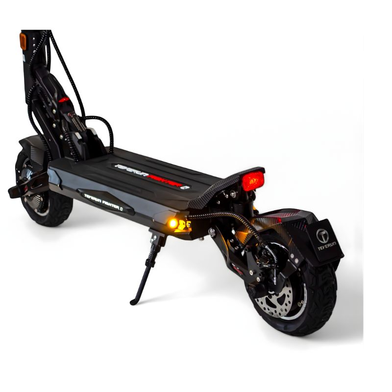 La Teverun Fighter Q est équipée de suspensions avant et arrière, garantissant un excellent confort de conduite, même sur routes irrégulières. Ses pneus de 8.5 pouces assurent une bonne adhérence et une maniabilité optimale en ville. Côté sécurité, elle dispose de freins à disque, offrant un freinage efficace et réactif. Son éclairage LED améliore la visibilité, vous permettant de rouler en toute sécurité de jour comme de nuit.